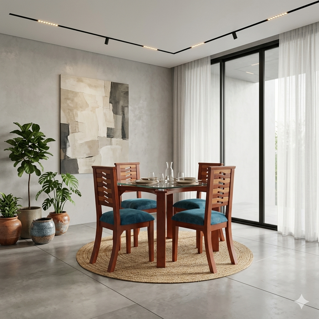 Comedor 4 puestos Lupe macizo en madera cedro cristal de 12 mm